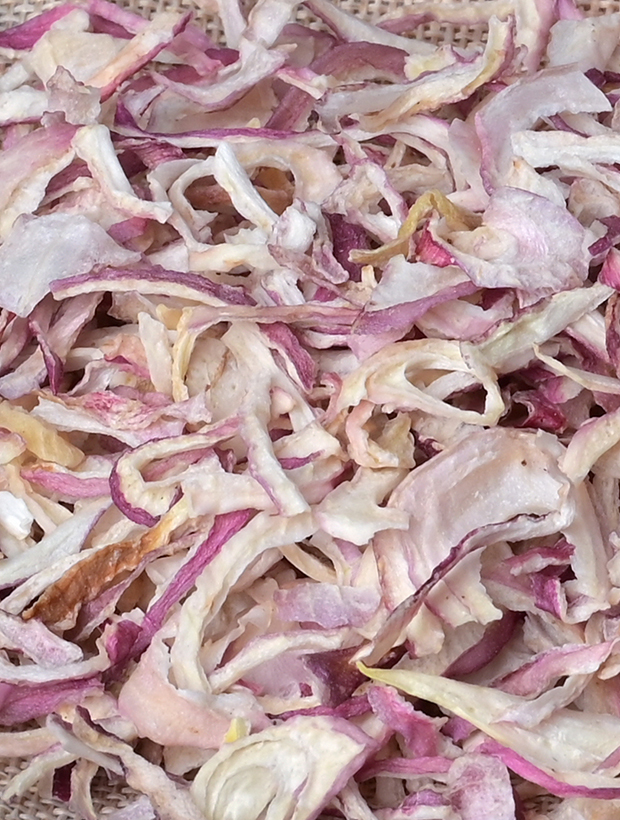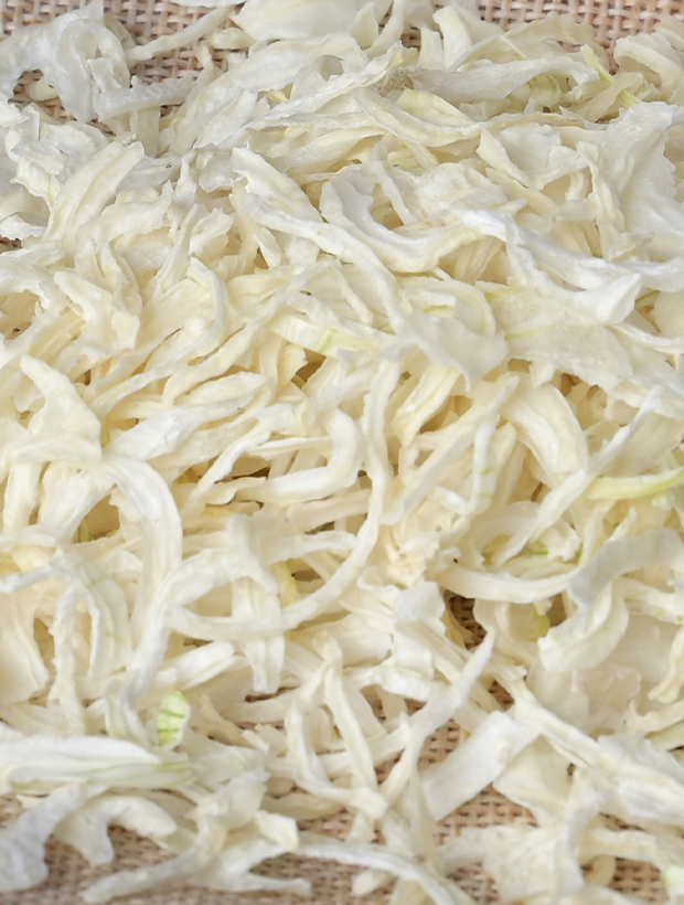 The cut onions are then gently dried, removing moisture while preserving their natural flavor and quality.